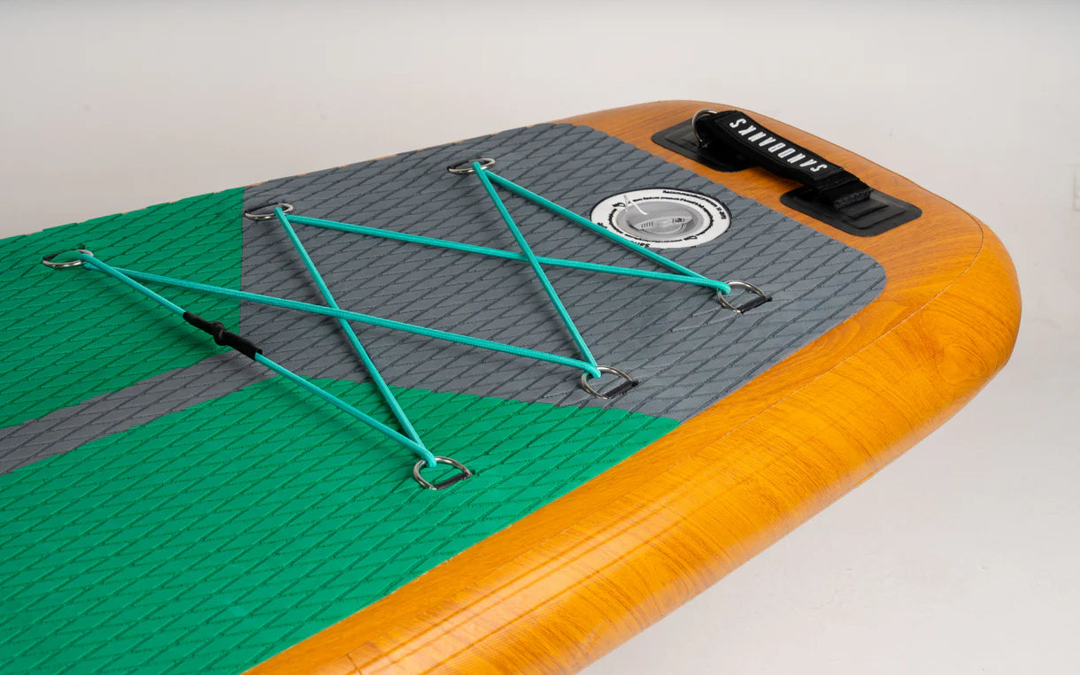 The Pro California 11'6'' x 32'' x 4.75'' iSUP is built for explorers who want smooth, efficient gliding across the water. Its touring shape delivers excellent tracking and straight-line performance, while the 32'' width provides stability and buoyancy for beginners and experienced paddlers alike. Triple-layer welded rails and reinforced skins create exceptional durability and stiffness. The complete package includes a two-stage pump, three-piece fibreglass paddle, conversion blade, leash, fins, and padded transport rucksack. With a 7-year seam leak guarantee and 110 kg carrying capacity, this board handles long-distance exploration with confidence.